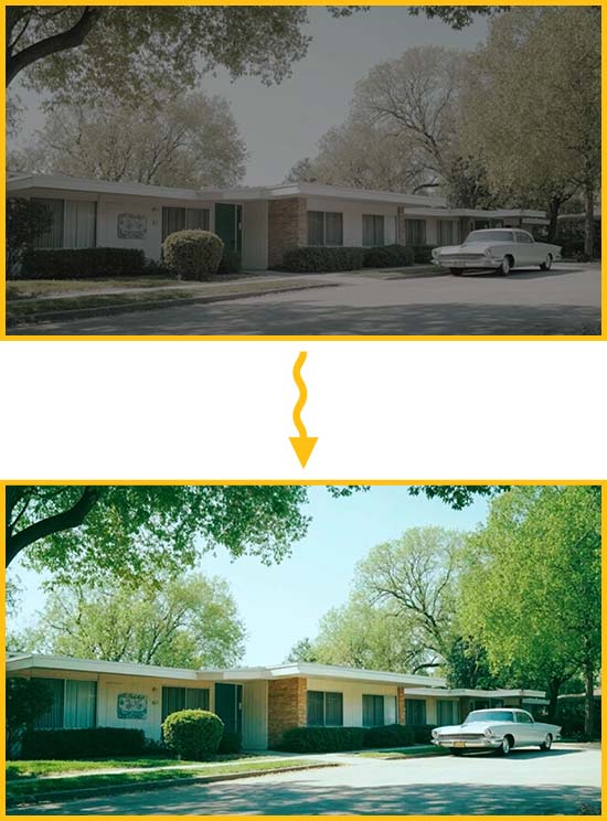 除了松下相机专属色调,在“色彩空间方案”下拉框中,从“一键高级调色”开始便是电影调色预设效果。这是爱剪辑率先推出的“AI专业电影调色”功能,与其他软件简单的滤镜叠加不同,它深入到画面各个细节,进行局部、精准的色彩调整,致力于为用户打造惊艳的电影级艺术效果。这里的效果丰富多样,用户可根据调色名称准确应用。