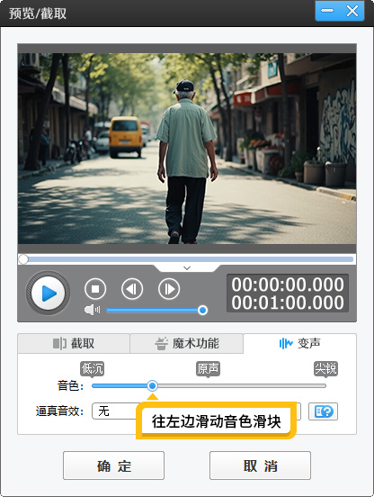 具体操作步骤如下:首先,打开爱剪辑软件,将需要处理的视频和音频导入到软件中。接着,右键点击视频,在弹出的菜单中选择“变声/逼真音效”选项。此时会弹出一个设置框,在“音色”栏目处,我们可以看到一个滑块。将滑块向左滑动,大致调节到中间的位置,就能初步将声音变成老人音。值得一提的是,爱剪辑支持实时试听功能,在调节过程中,我们可以随时点击播放按钮,聆听声音的变化效果,根据实际需求进行微调,直到达到满意的老人音效果为止。